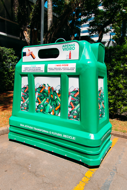 Todo o vidro pós-consumo depositado nos Ecopontos é encaminhado para reciclagem e retorna ao ciclo produtivo, virando novas embalagens. O processo evita descarte irregular e contribui para a redução de emissões de CO₂.